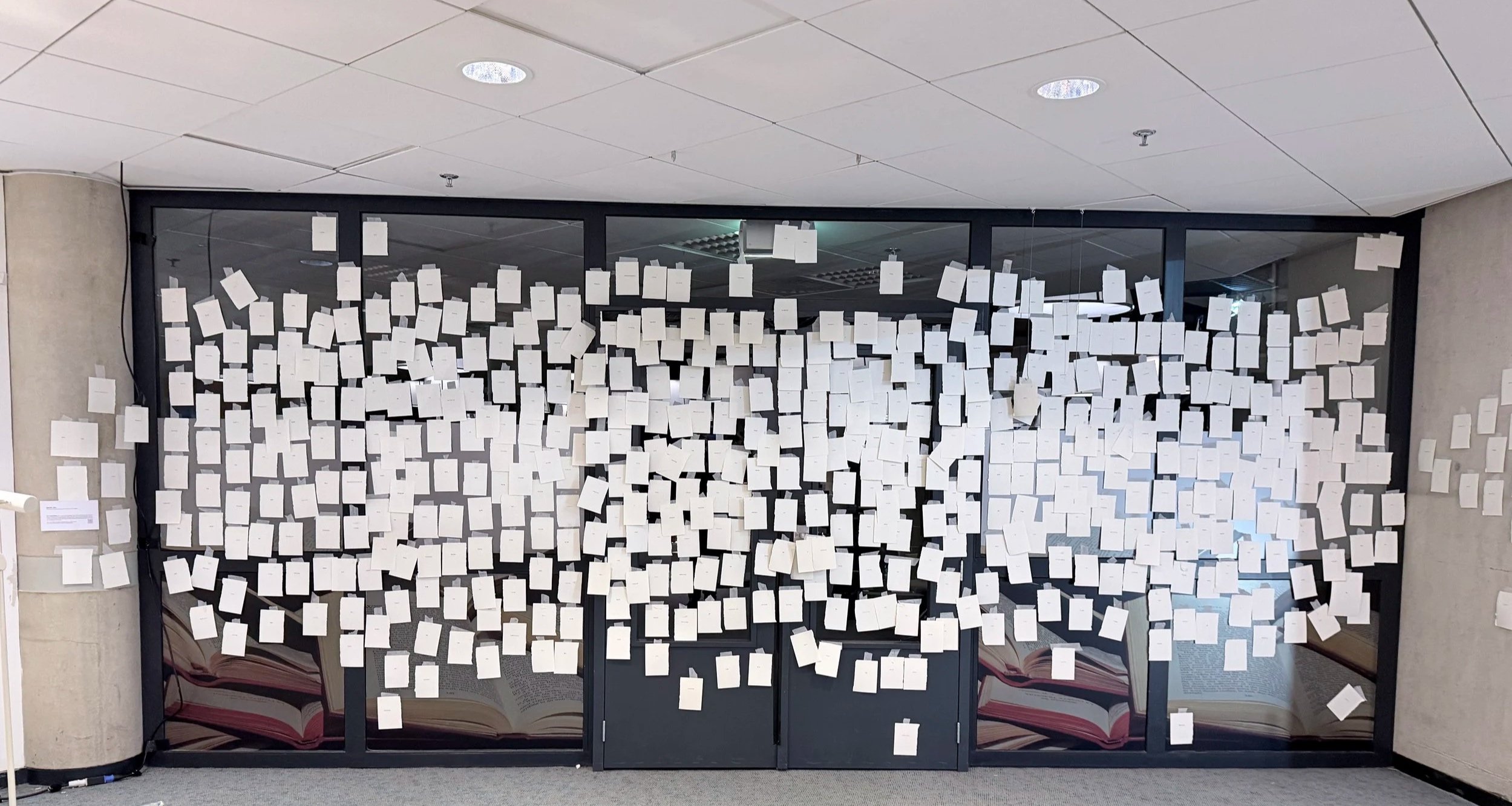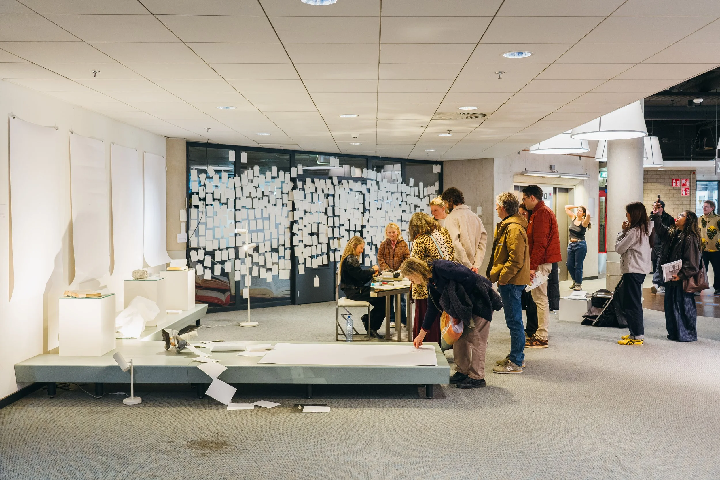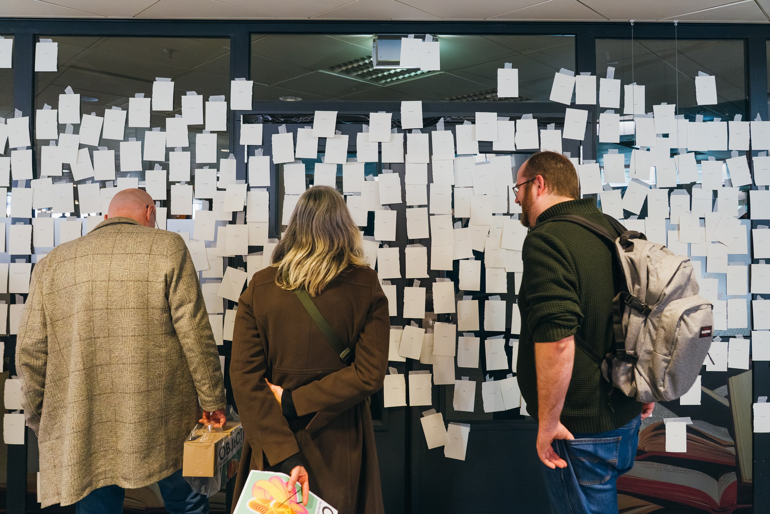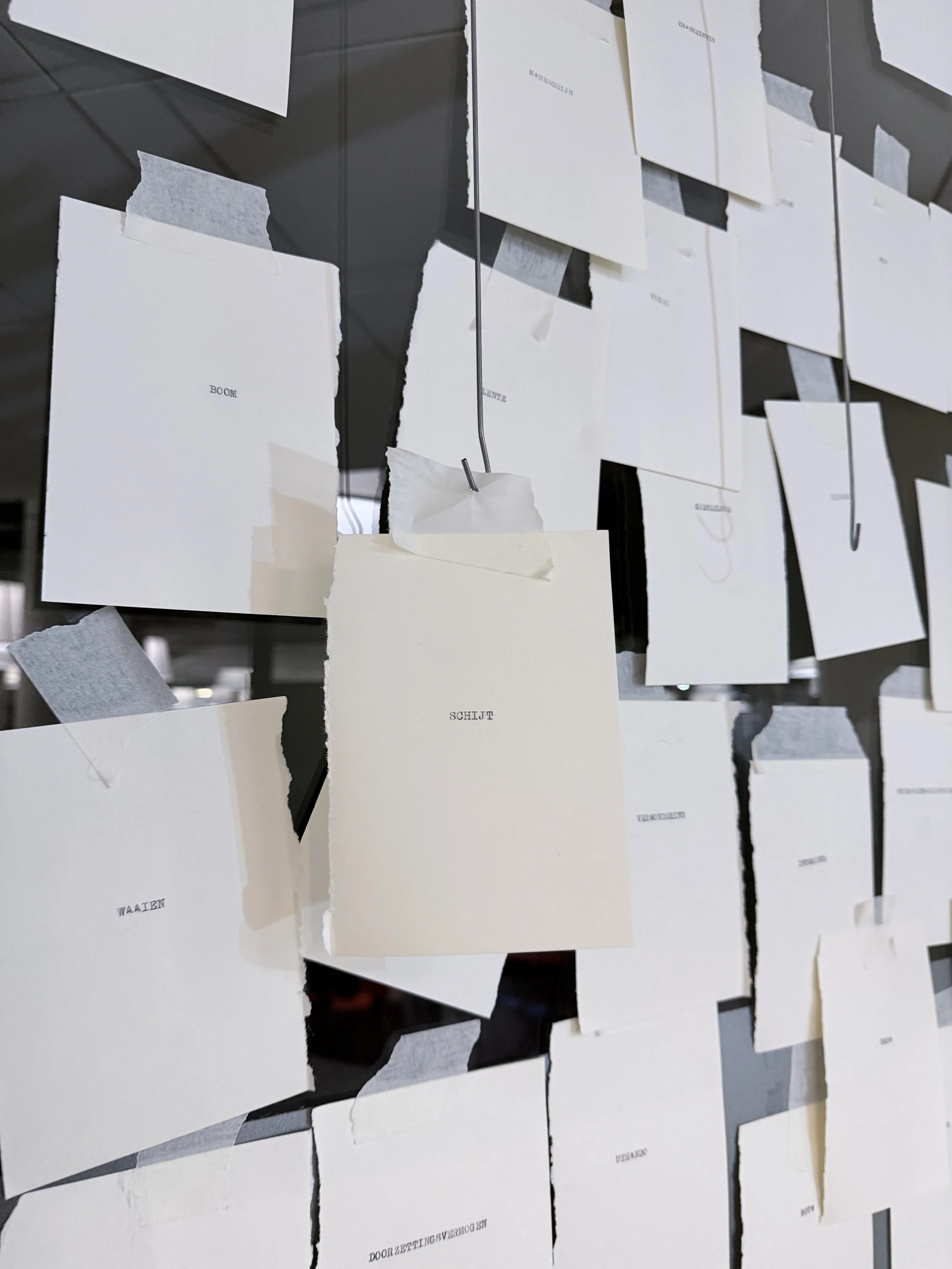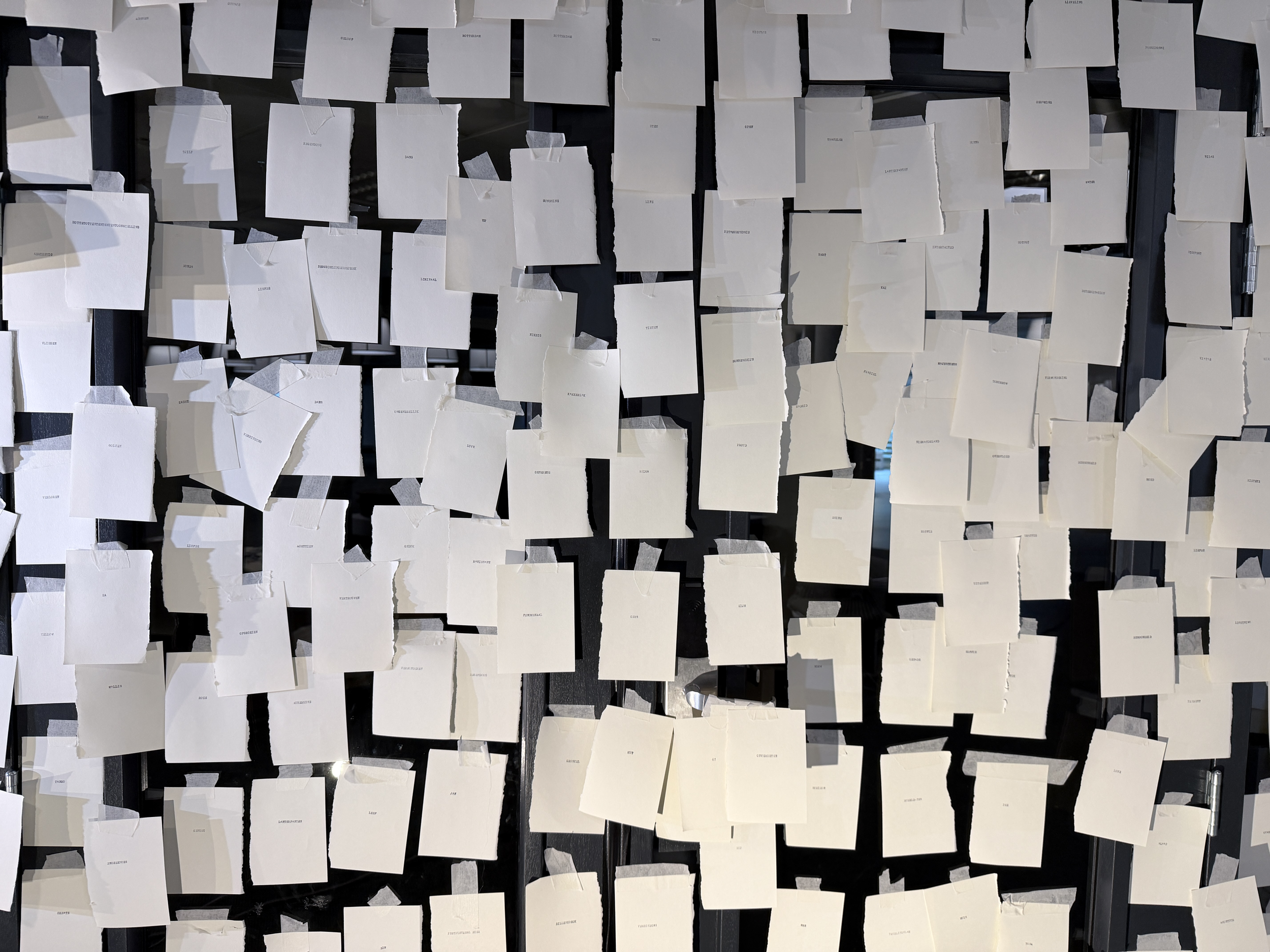 The evolving wall showed fragments of all the different lives. It made visible what normally remains hidden. The chosen words became research. Children, youngsters, adults, seniors, all lives were mixed together on the wall. All with their own story. Surprisingly, visitors picked well-chosen places on the wall for their specific word, creating combinations of words with meaning and/or humor. Together, people became the creators of the emerging wall of words.