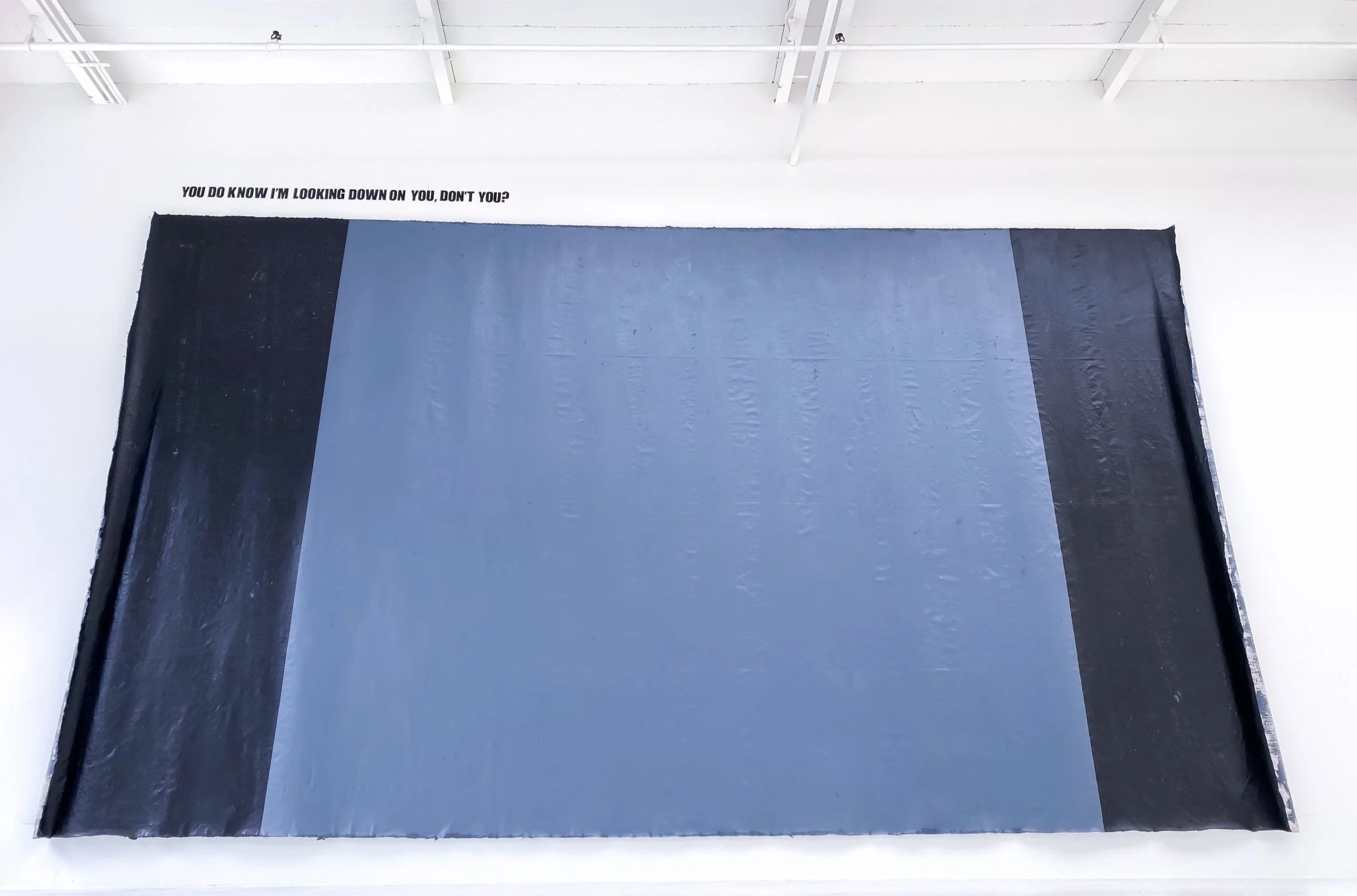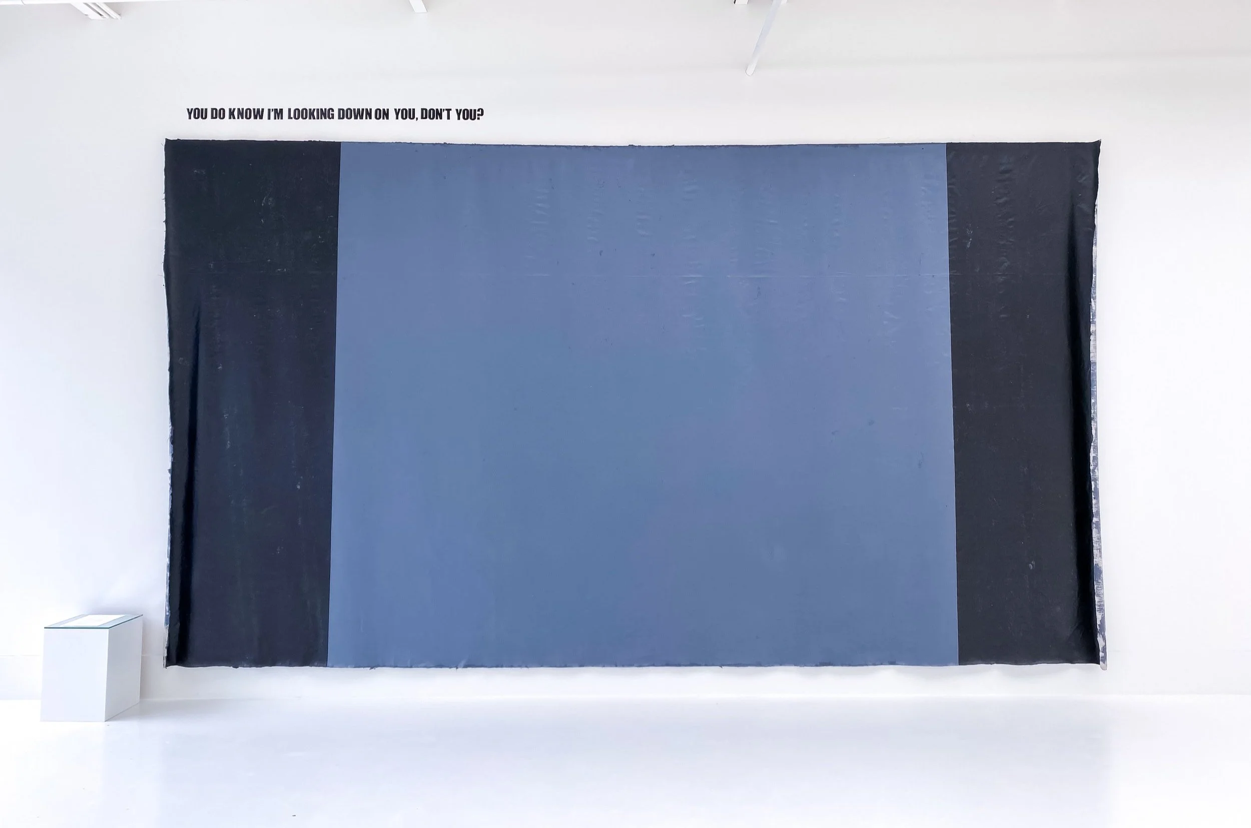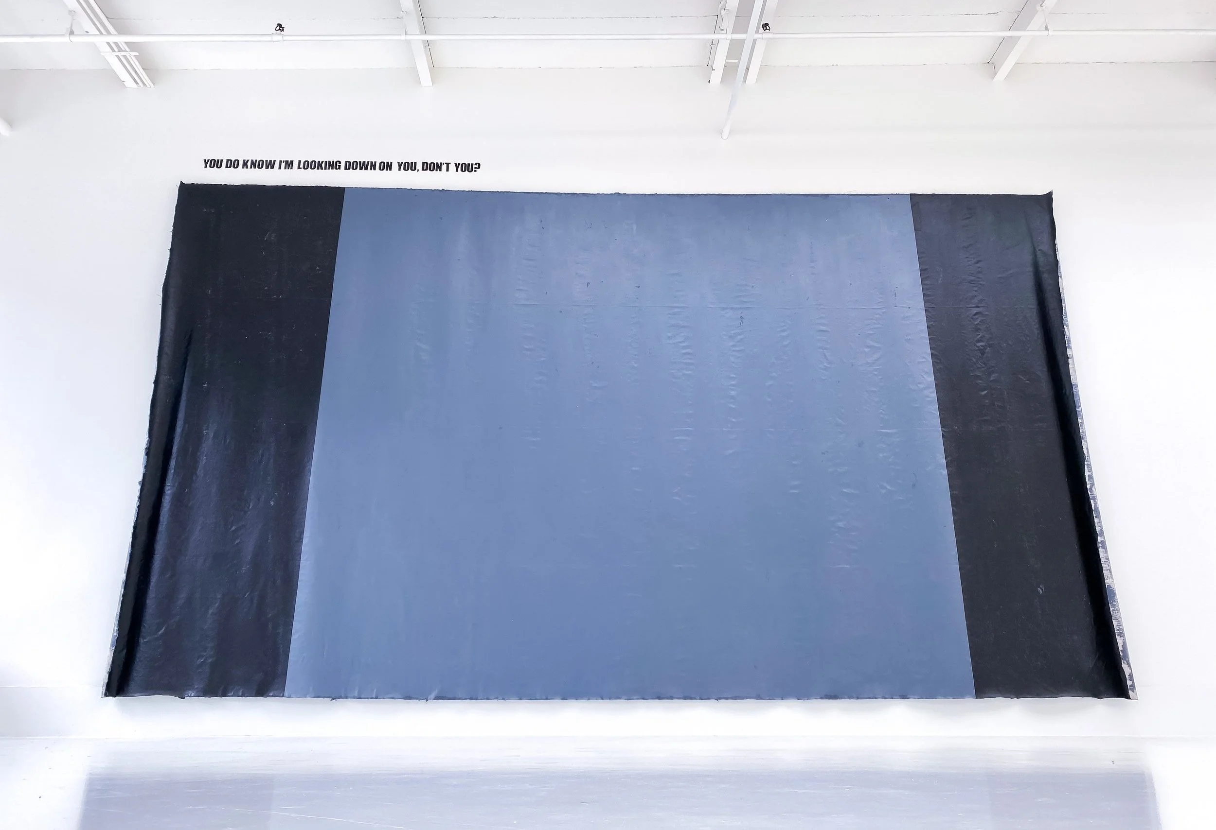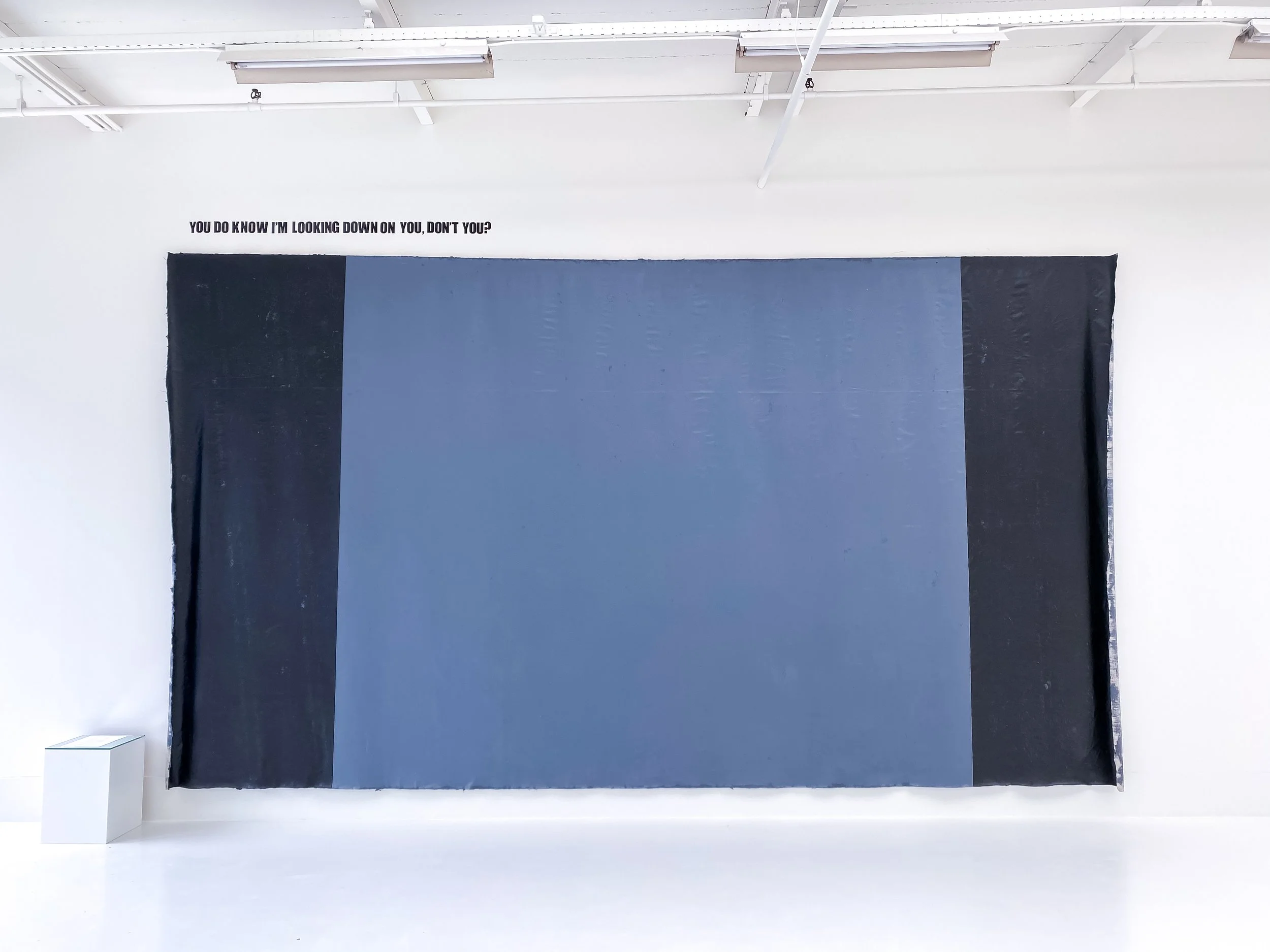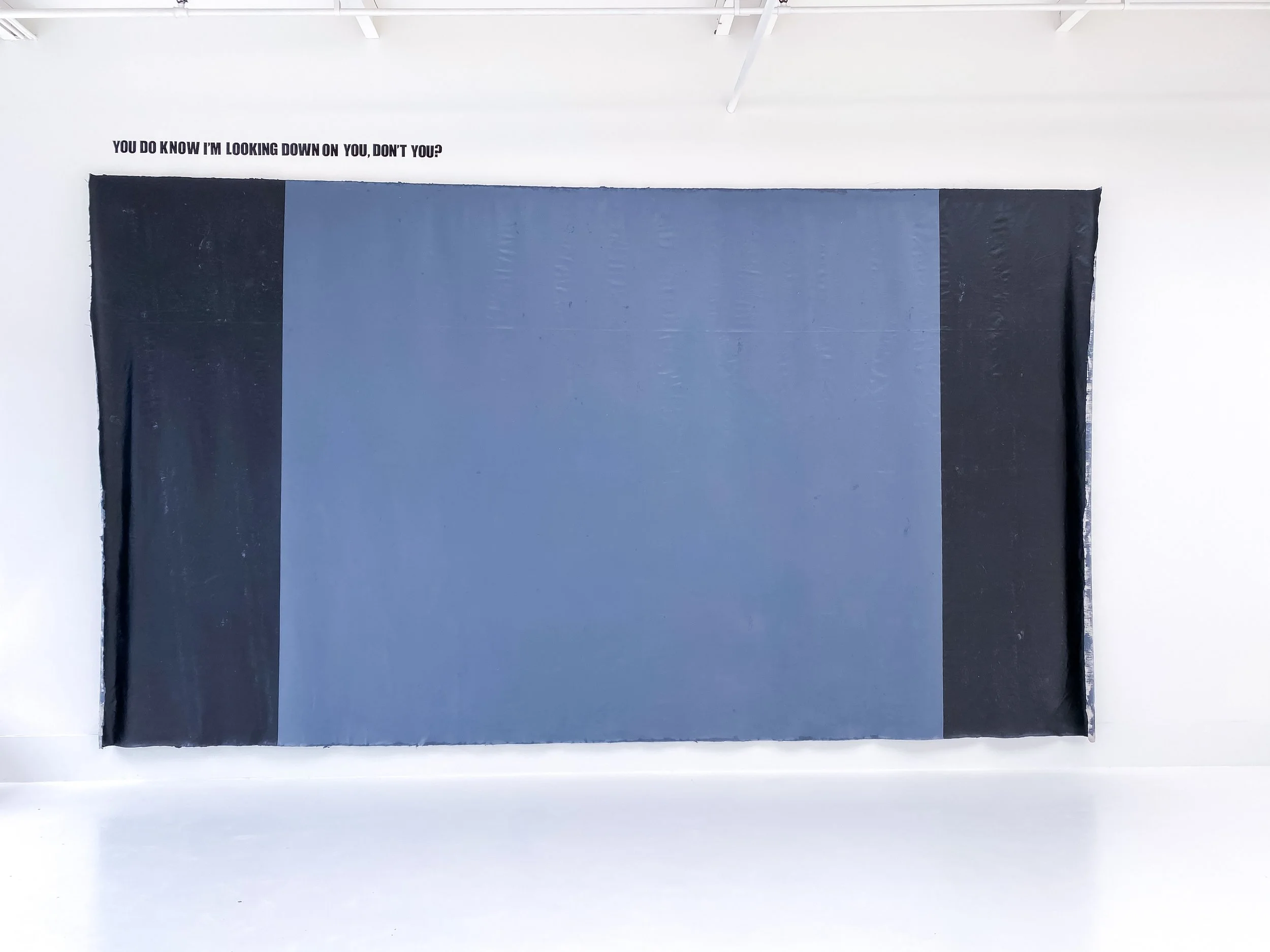 The canvas is extremely large, still the text is placed above it, deliberately making the entity that pronounces these words larger than the art piece itself.