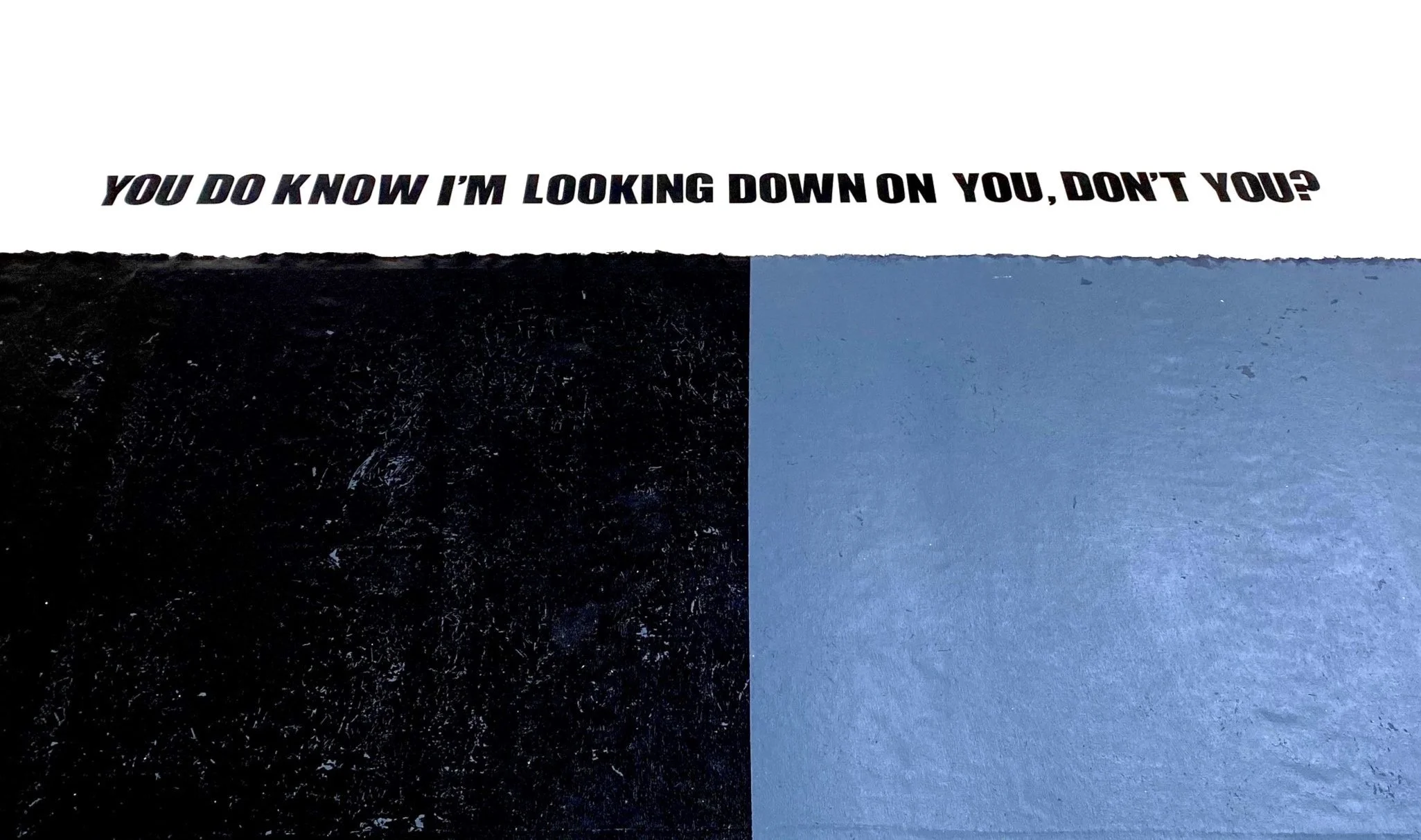 YOU DO KNOW I’M LOOKING DOWN ON YOU, DON’T YOU? refers to various social and philosophical aspects and reflects on multiple psychological levels.