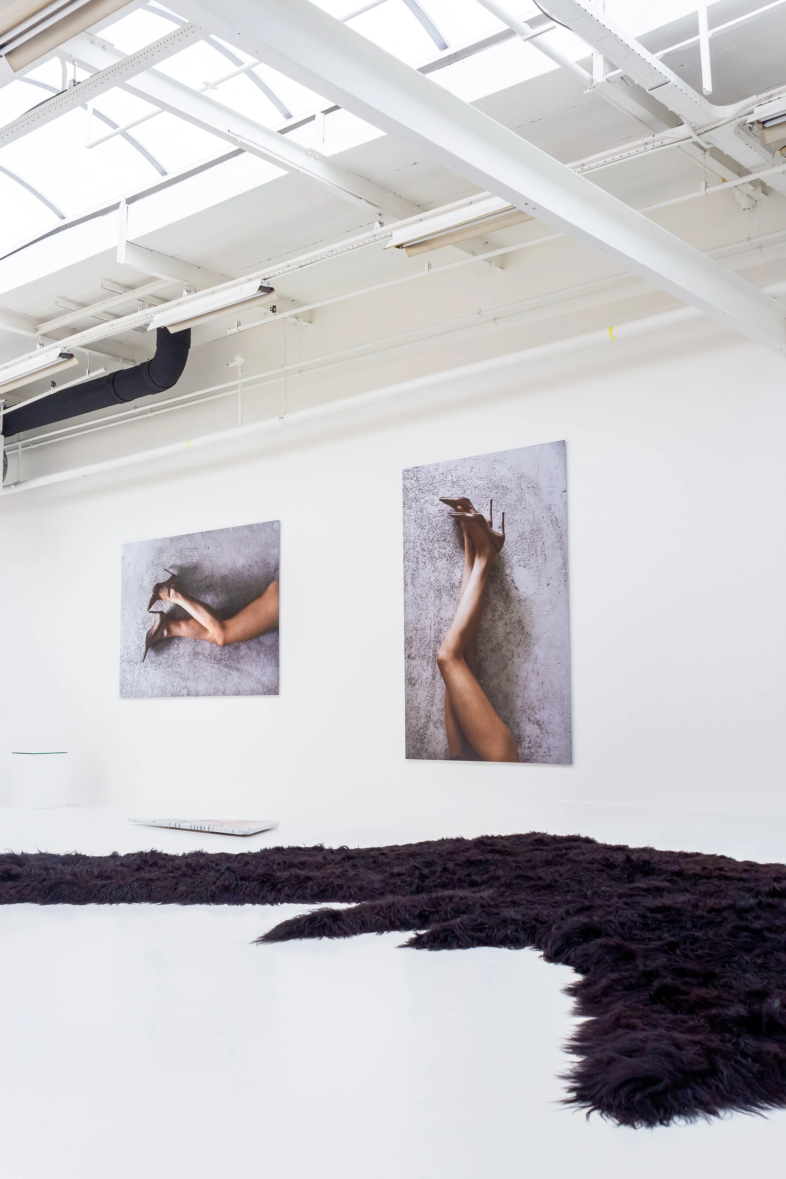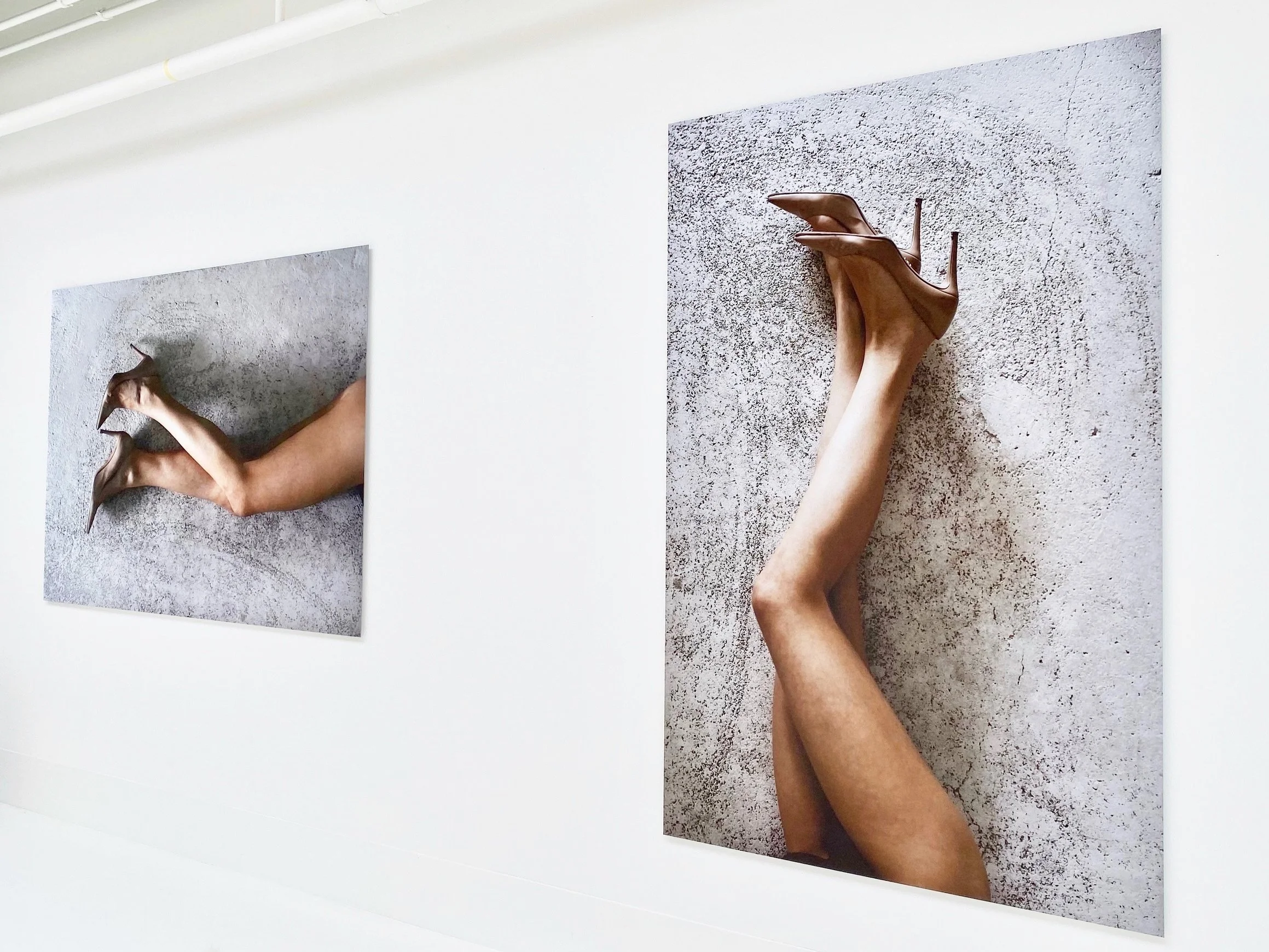 The photos are extremely large. It makes the female legs larger than life-size. It is an additional purpose of the work; magnify women in this highly patriarchal society.